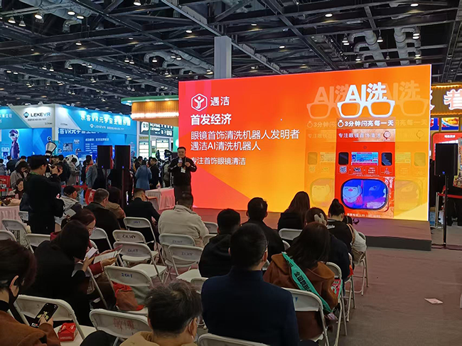 2025年3月15日,正在北京中邦特许加盟展上,北京遇洗智能时间有限公司携其中枢产物“遇洁AI珠宝眼镜洗刷呆板人”惊艳亮相,并吸引近千名用户和署理商观摩与行使,这款交融人工智能与超声波时间的更始筑设,依赖其精准的洁净材干与众元场景适配性,成为展会主题,吸引数百家投资机构及行业协作伙伴驻足洽讲,掀起智能洁净周围的投资高潮。